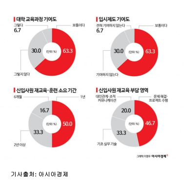 ์ฃผ์ 30๋ ๊ธฐ์ ์ธ์ฌยท์ฑ์ฉ ๋ด๋น์๋ฅผ ๋์์ผ๋ก ์ค์ํ ์ค๋ฌธ์กฐ์ฌ ๊ฒฐ๊ณผ, ๊ตญ๋ด ๊ธฐ์ ๋ค์ ๋ํ ์ ์์ ๋์ ๊ต์ก์ด ์ฐ์ ํ์ฅ์ ์๊ตฌ๋ฅผ ๋ฐ๋ผ๊ฐ์ง ๋ชปํ๊ณ ์๋ค๊ณ ์ง์ ํ์ต๋๋ค. ๋๋ค์ ๊ธฐ์ ์ด ์ ์ ์์ฃผ์ ํ์ผ์ ์ ์์ ๋๊ฐ ์ฐฝ์์ ์ด๊ณ ์ค๋ฌด ์ญ๋์ ๊ฐ์ถ ์ธ์ฌ ์ ๋ฐ์ ๋์์ด ๋์ง ์๋๋ค๊ณ ํ๊ฐํ์ผ๋ฉฐ, ๋ํ ๊ต์ก ๋ํ ์ด๋ก ์ ์น์คํด ์ค์ ๋ฌธ์ ํด๊ฒฐ ๊ฒฝํ์ ์๊ธฐ ์ด๋ ต๋ค๊ณ ๋นํํ์ต๋๋ค.