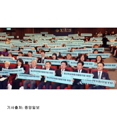 1์ 20์ผ ์คํ 2์, ๊ตญํ๋์๊ด ๋๊ฐ๋น์์ '๊ต์ก์๋ด'์ ๋น๋กฏํ 300์ฌ ๊ฐ ๋จ์ฒด๊ฐ ๋ชจ์ธ '์ถ์ ํ๊ต์ฑ์ฉ์ฐจ๋ณ๋ฐฉ์ง๋ฒ ๊ตญ๋ฏผ์ด๋'์ '์ถ์ ํ๊ต์ฑ์ฉ์ฐจ๋ณ๋ฐฉ์ง๋ฒ ์ ์ ์ถ์ง ๊ตญ๋ฏผ๋ํ'๋ฅผ ๊ฐ์ตํ์ต๋๋ค. ์ด ๋ํ์์๋ ๊ฐ๋๊ตฌ ์์ ๋ฑ 10์ฌ ๋ช